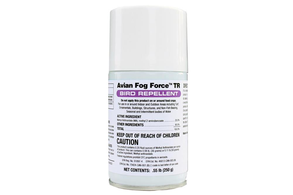 Avian Fog Force™ TR Bird Repellent is an EPA registered bird repellent that is effective against nuisance birds and is suitable for use around humans, pets and terrestrial animals. Designed to be used with a metered Timed Release Dispenser. Use Indoors or Outdoors.
