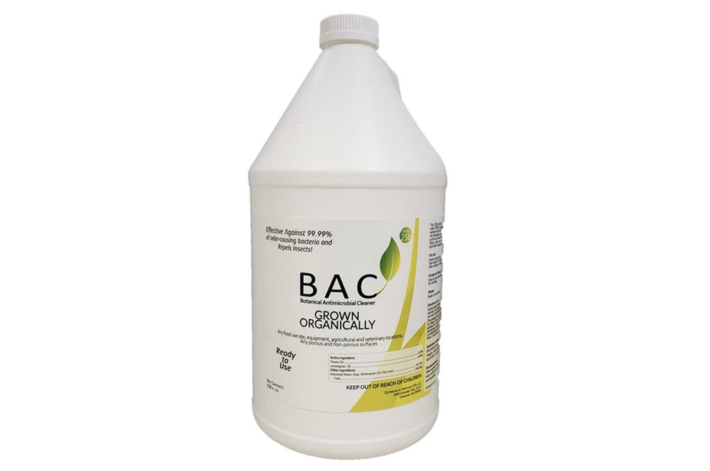 BAC is by far the most versatile botanical antimicrobial cleaner available today. BAC can be used on soft and hard surfaces, food contact surfaces, glass, stainless and a multitude of locations as a fantastic antimicrobial cleaner and is 99.999% effective on odor causing germs. A Natural Alternative!