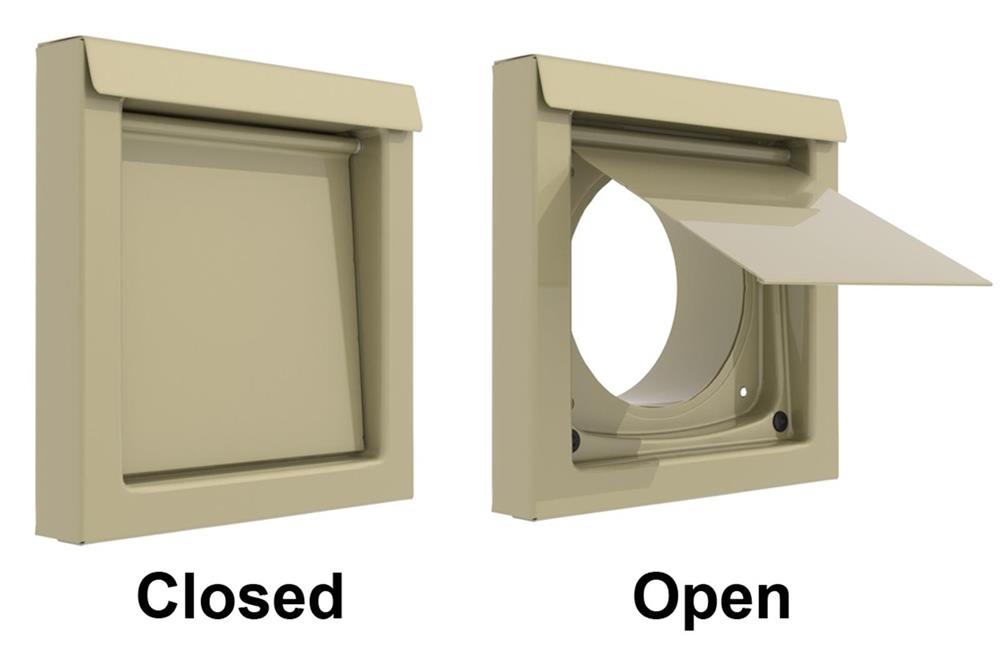 Featuring a slightly reduced collar diameter, Dryer Wall Vents mate easily to any 4" duct work. This means it's as easy to add the new vent to existing construction as it is to include it in new construction. Four built-in holes for fasteners are completely covered by the damper. Installation is simply a matter of slipping the collar into the duct, opening the damper and drilling in a quick four screws. For installations with a larger opening through the wall, the secondary back plate allows for a wider fastener footprint.