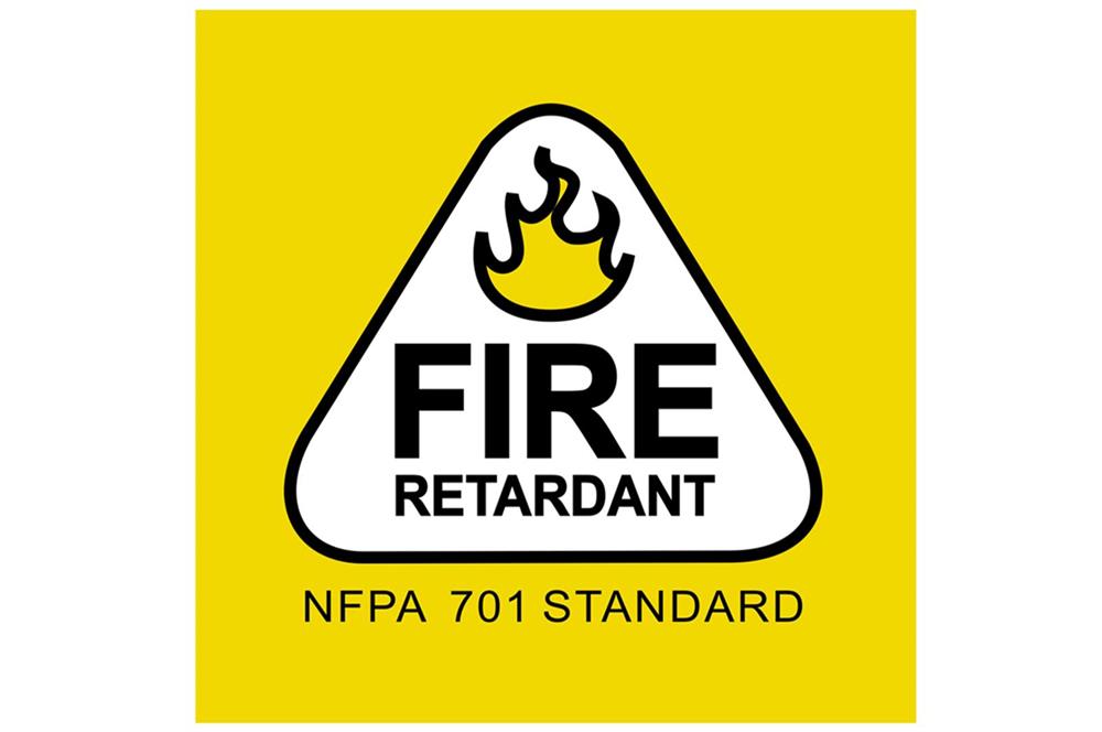 NFPA 701 sets the standards for testing textiles and films for fire propagation. This test is not determining if the item is flame proof, but it's resistance to ignition and flame propagation in specific conditions.