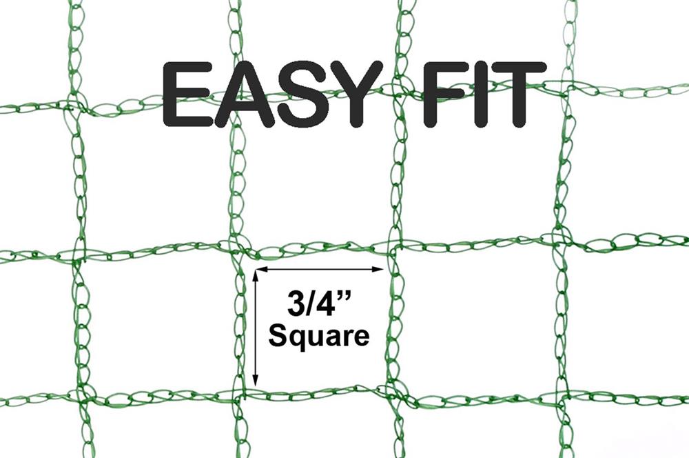 Because EASY-FIT Netting is square and does not stretch, it is much easier to install than diamond mesh netting. Simply pull the edges of the net out and down, letting it drop into position at the ground.