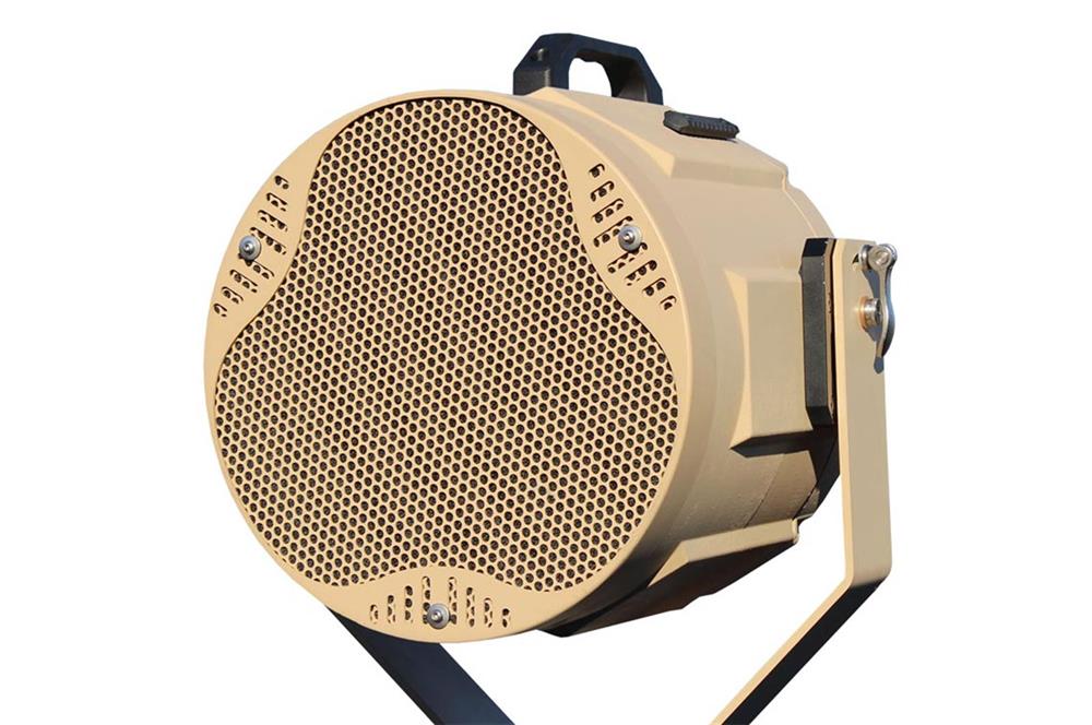 Originally designed and developed for the military and law enforcement applications, the HyperSpike 14 uses award winning HyperSpike sound generation technology. This focuses sound waves into a well defined 12 degree +/- sound beam that can be directed at individual targets, even if the target is over a half mile away. This focused beam is used to transmit critical communications, security commands, selected wildlife distress calls, predator calls or alert tones that can be clearly understood out to 1/2 of a mile.