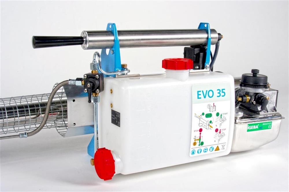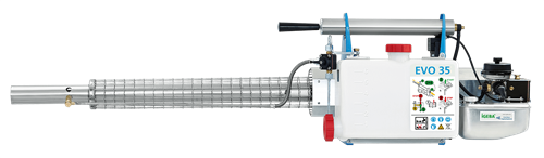 The EVO 35 ACT thermal fogger for disinfection, pest control, stored products, odor control and special effects. Use oil based formulations with the standard fog tube.
