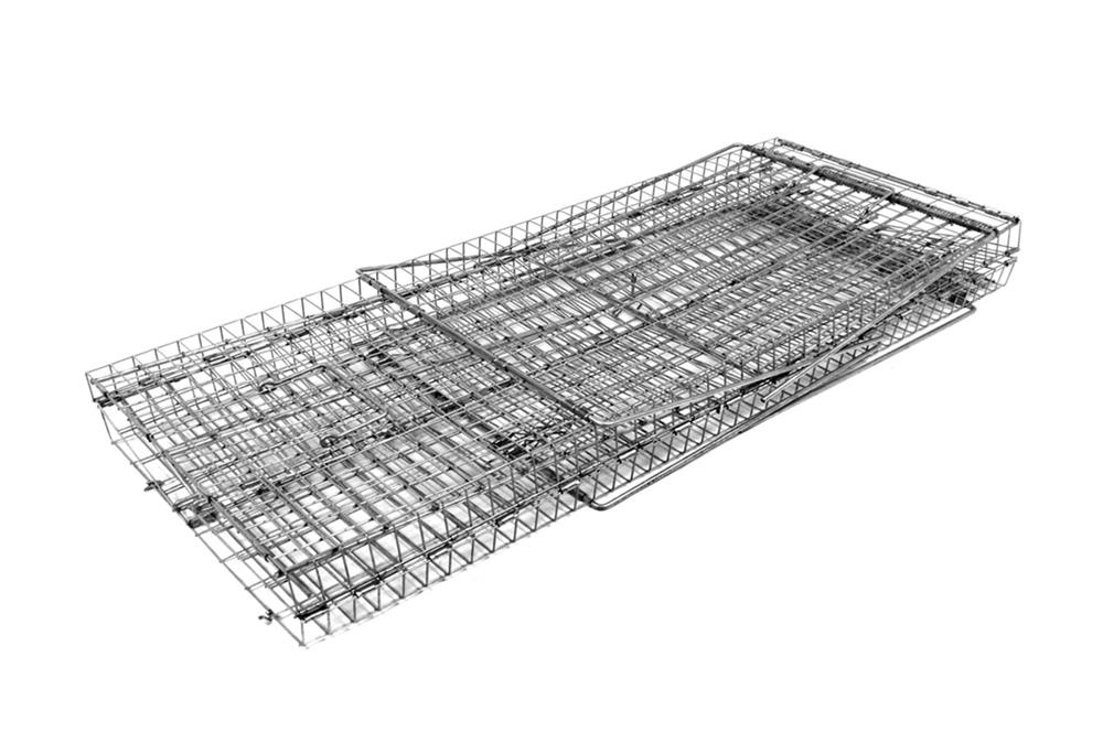 Live Capture Chicken Trap Fully assembled and ready to use, this repeating Chicken Trap can catch multiple chickens per setting. Constructed of 1" x 2" - 14 gauge galvanized steel wire mesh. 42"x16"x20" #TH510R CALL - Available by Special Order