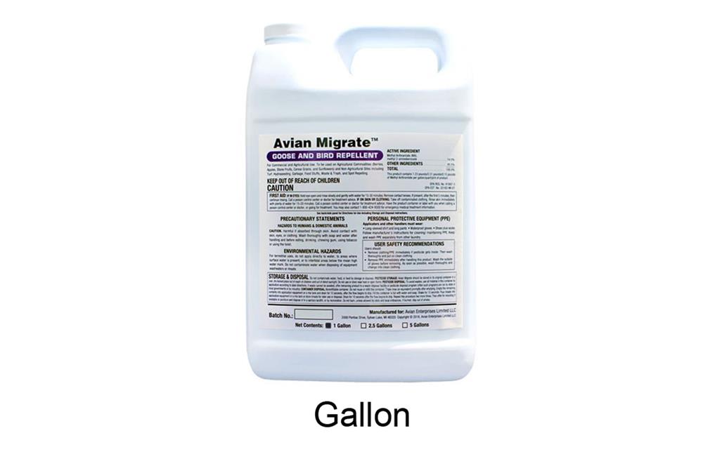 Avian Migrate Goose Repellent mixed with water is easy to apply, biodegradable, non-toxic and is safe for humans and pets. It can reduce geese populations with as little as one application. Spray on turf and grass areas such as golf courses, lawns, parks, athletic fields, cemeteries, and many other areas where geese have become a problem. Make Avian Migrate a part of your routine turf maintenance to effectively repel geese and enhance the appearance and usefulness of your grass and turf areas.