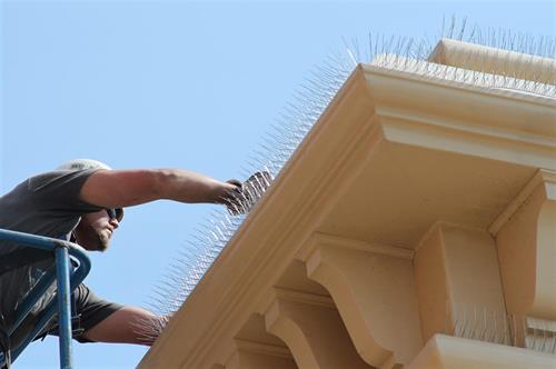 B. Install specified Premium Nixalite Bird Spike Models in strict accordance with manufacturer’s spike strip spacing and installation guidelines. Protect all surfaces where pest birds can land, roost and nest.