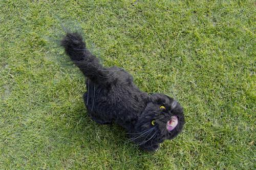 resembles a hungry predator. The Scary Cat is equipped with a twitching tail and skyward-looking face that moves with the slightest breeze or rocking action of the boat or dock. Place it in your garden for full time protection. Birds instinctively avoid it.