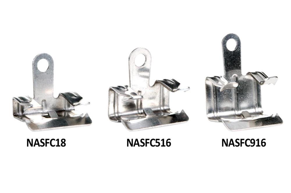 Stainless steel hammer on flange clips are sold by the 25 count box.